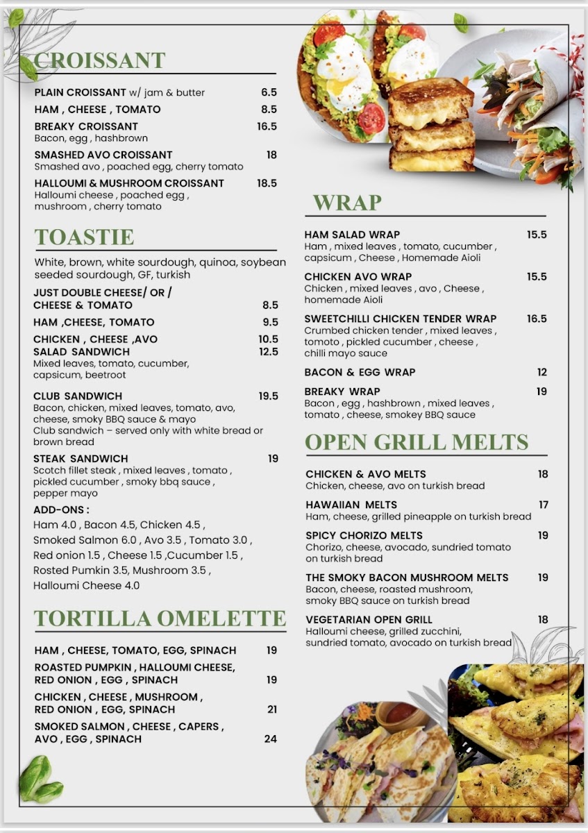 - Toasties: Indulge in classic combinations like the Ham, Cheese, and Tomato Toastie or try the Chicken, Cheese, and Avo Toastie.
